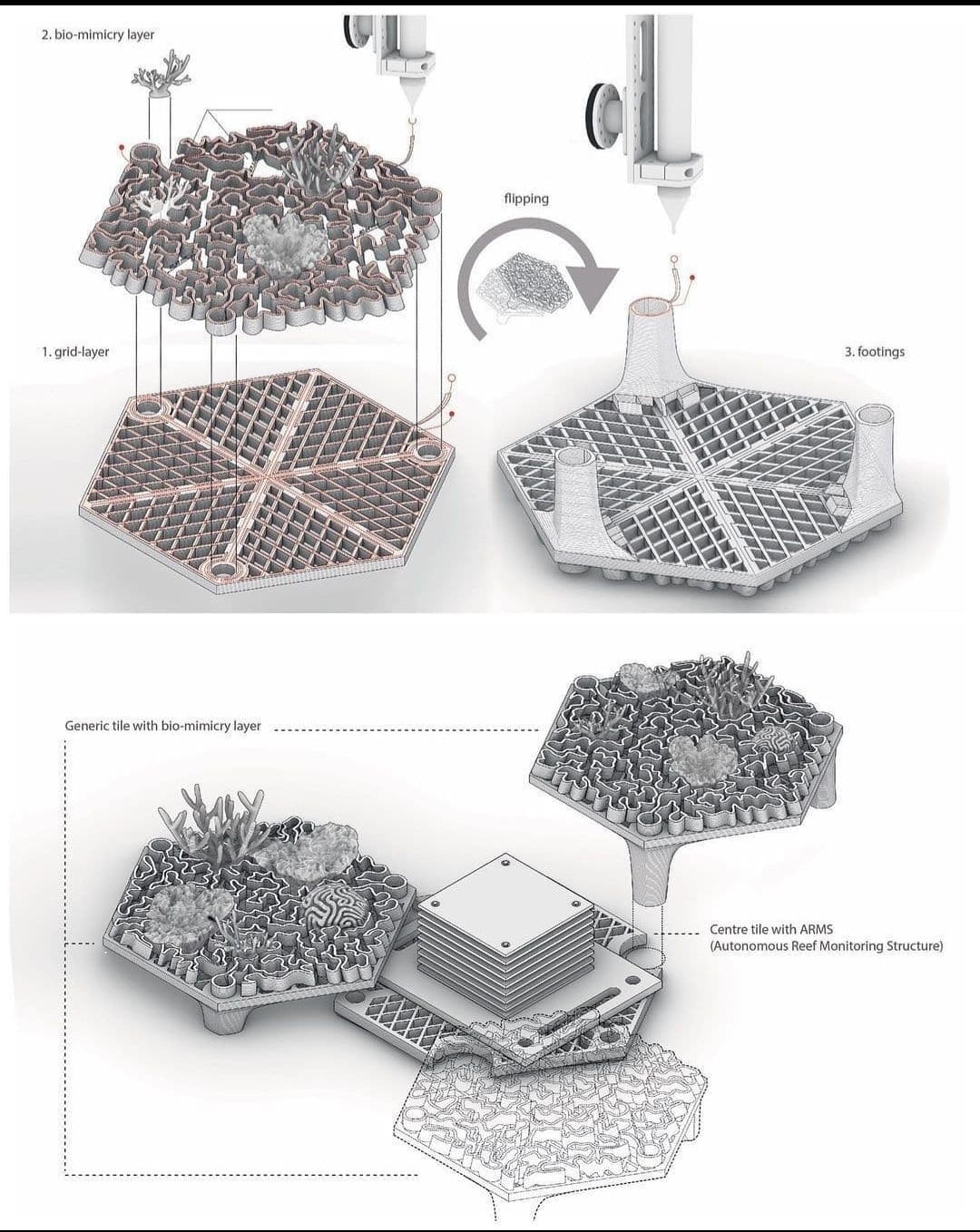 Investigadores, en la ciudad de Hong Kong, han estado desarrollando estructuras de arrecifes de coral impresas en 3D utilizando materiales orgánicos. Estos, pueden conducir a la creación de nuevas oportunidades bajo el mar. La colaboración se ha llevado a cabo entre HKU Architecture, el Laboratorio de Fabricación Robótica y el Instituto Swire de Ciencias Marinas.