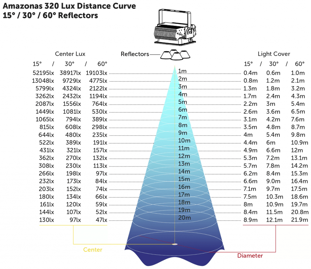 Amazonas 320 es verdaderamente único en su clase y se destaca del resto con un valor PAR más alto a 110 cm/43 pulgadas de profundidad.