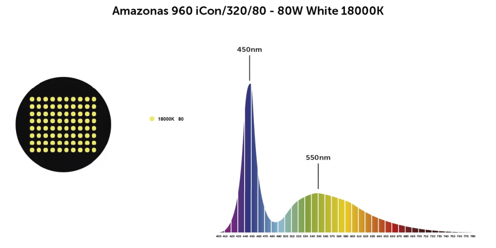 18000K White: este canal le dará el color natural a mitad de camino entre el amanecer y el atardecer. Este es un espectro muy claro y brillante.