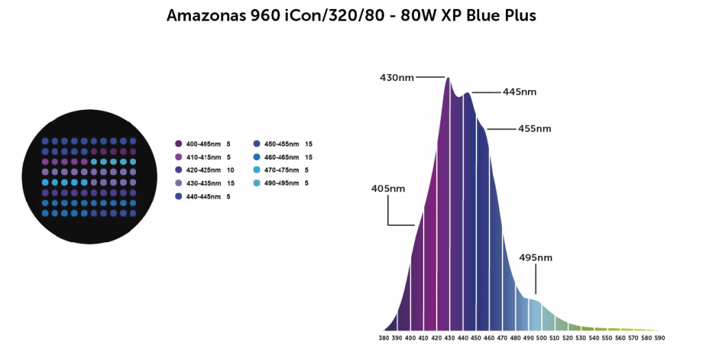 Blue Plus XP – Azul/Violeta/UV – 400 – 500nm – para SPS/LPS/Crecimiento de corales blandos y gran “estallido” de corales fluorescentes.