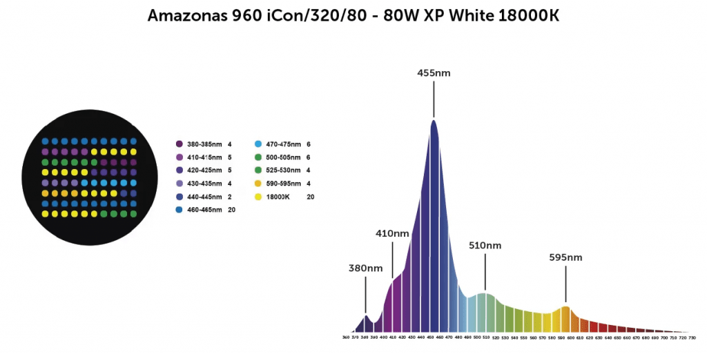 18000K XP – LUZ DE DÍA DE ARRECIFE -desde UV verdadero 380nm – 700nm – para SPS/LPS/crecimiento, color e iluminación de corales blandos.